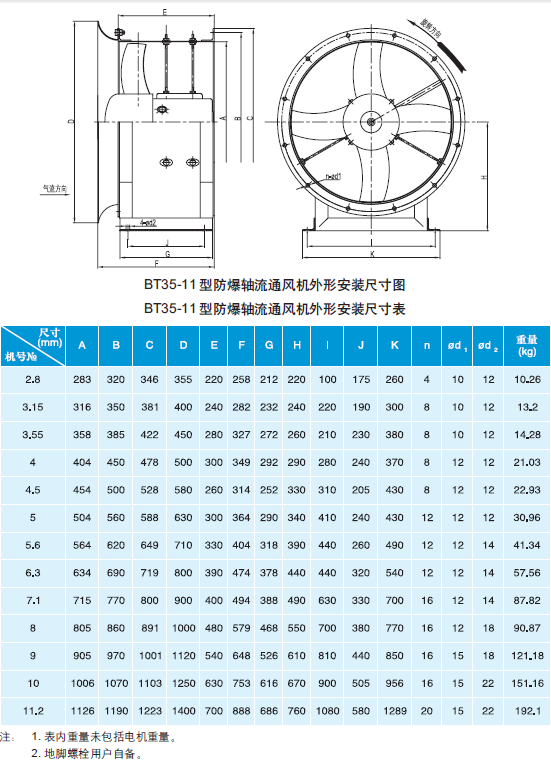 BT35型防爆軸流通風(fēng)機(jī)性能
