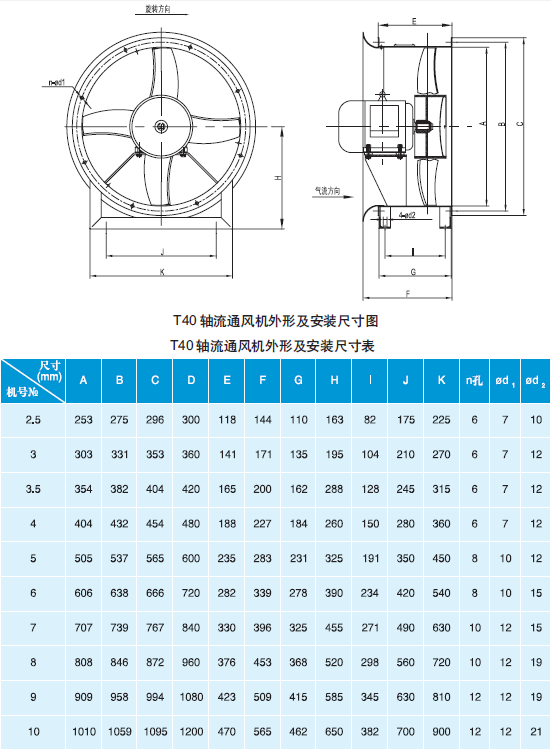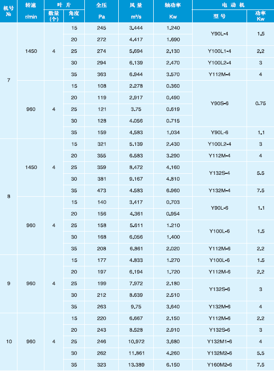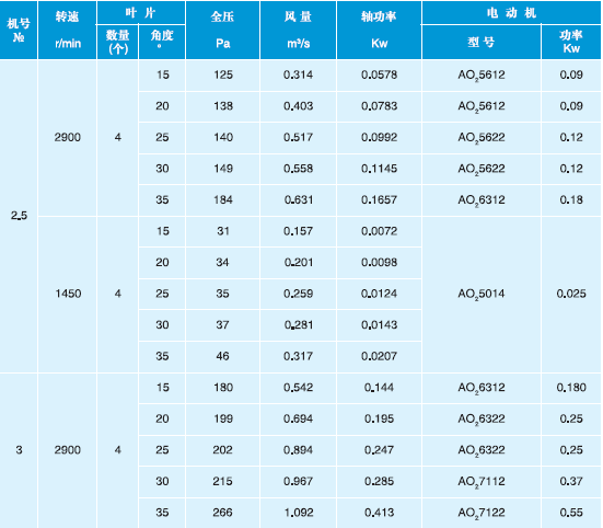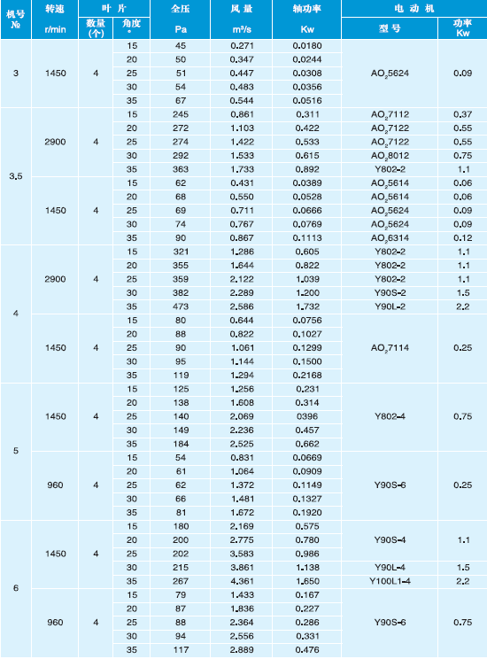 T40-11型軸流風(fēng)機(jī)性能表