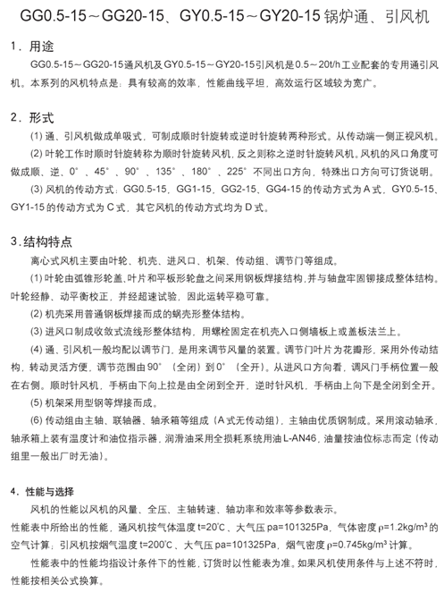 GG0.5-15、GG20-15、GY0.5-15、GY20-15鍋爐通、引風(fēng)機(jī)